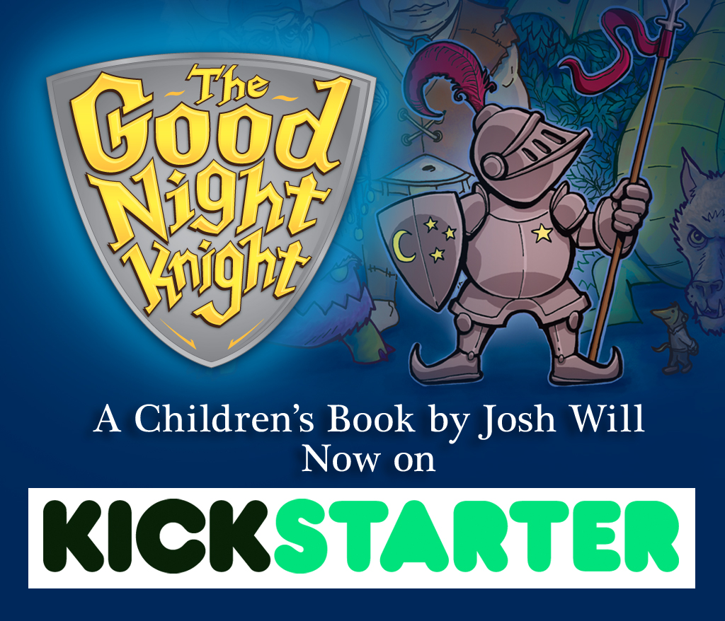 It’s finally here! You can order your hardcover copy of The Good Night Knight children’s book through Kickstarter NOW…HERE! Plus other fun goodies as well. But you might want to hurry, I’ve already had 4 original illustrations sell out and other rewards are going quick. Order your book by clicking here. You could also go to www.kickstarter.com and then search for Josh Will or The Good Night Knight.